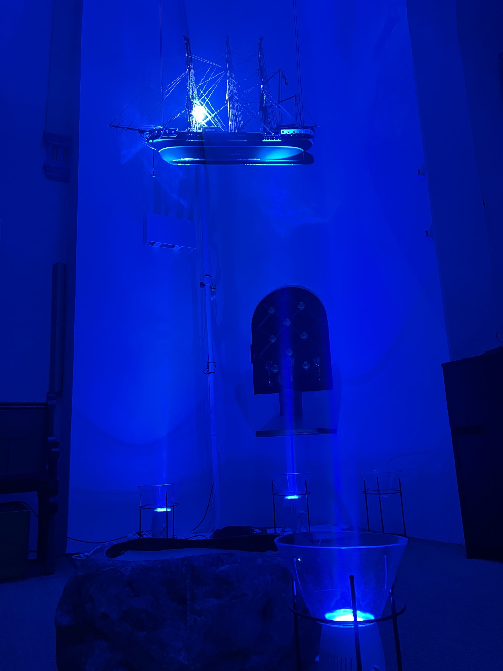 Das Objekt im Kirchenraum ist somit mehr als nur ein Schiff: In ihm überlagern sich die Betrachtung als Gedenkschiff, Modellschiff, Votivschiff sowie als Symbol für eine eng mit dem Leben und Arbeiten auf See verbundene Biografie. Mit dieser Vieldeutigkeit setzt sich das lichtschattenwasserhörspiel auseinander und macht sie mit mehreren Sinnen erfahrbar.