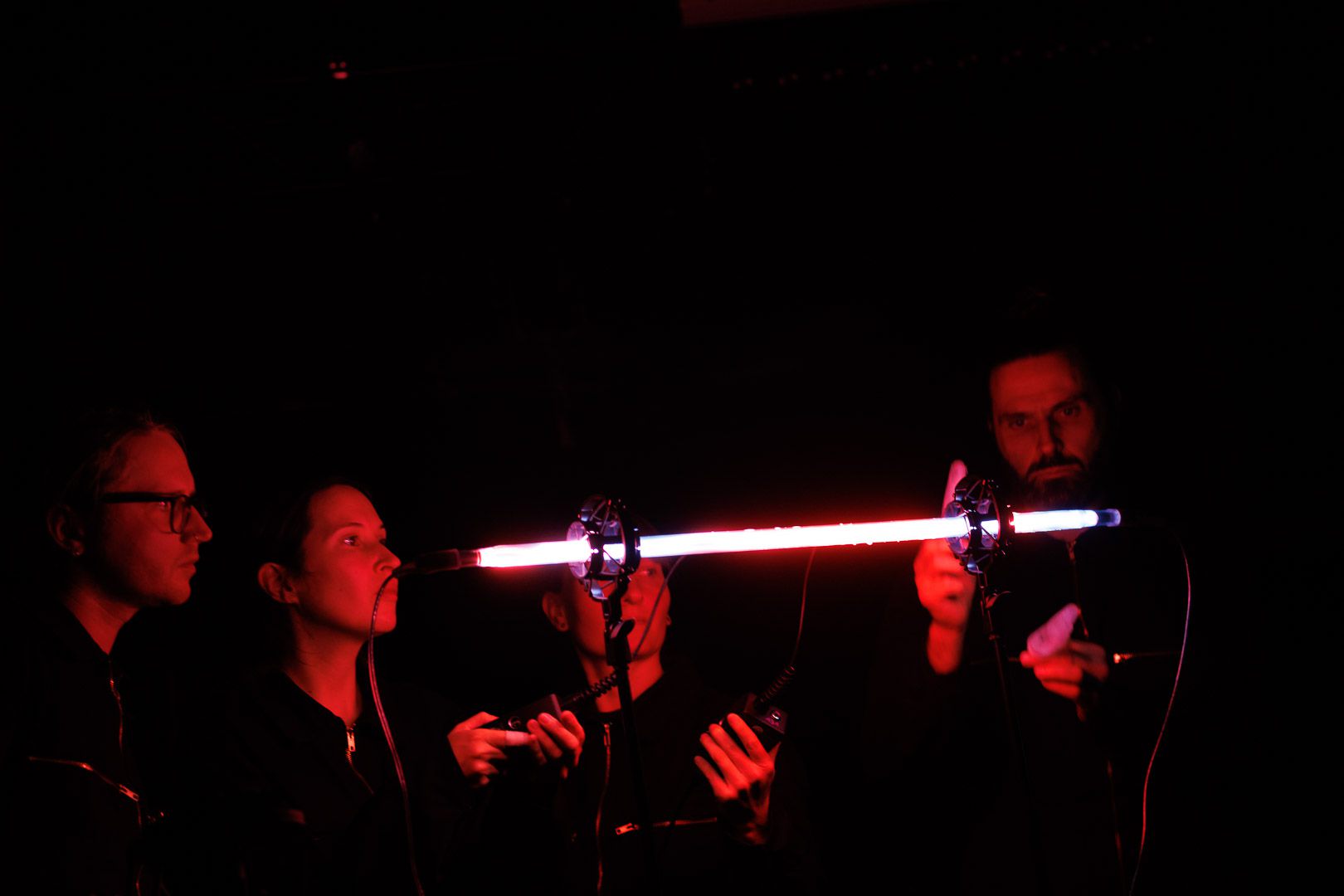 Mit der Objekt-Musik-Performance Light in Concert tauchen wir ein in eine Welt, in der Licht hörbar ist und widmen uns einem Phänomen, das wir für gewöhnlich nicht wahrnehmen: dem Klang von Licht. Gemeinsam mit den Musiker*innen der deutsch-niederländischen Band YENGA hören wir mit selbst entwickelten Geräten, die die Frequenzen von Licht in Klang übersetzen, den verschiedensten Lichtobjekten zu und lernen sie ganz neu kennen. In einer assoziativen Szenenfolge entfalten sich vor unseren Augen und Ohren Bilder und Geräuschkulissen, kommen die Lichtobjekte visuell wie akustisch ins Erzählen. Von meditativ bis industriell, von wabernd bis kratzend und knackend entspinnen sich unerwartete Klänge von alltäglichen Objekten wie Lichterketten, Stirnlampen oder Neonröhren. Über ihre charakteristischen Sounds und Rhythmen verwandeln sich die Lichtobjekte in strahlende Protagonist*innen, die mit individuellen Stimmen mal für sich sprechen, mal in Kontakt miteinander kommen, mal mehrstimmig auftreten.