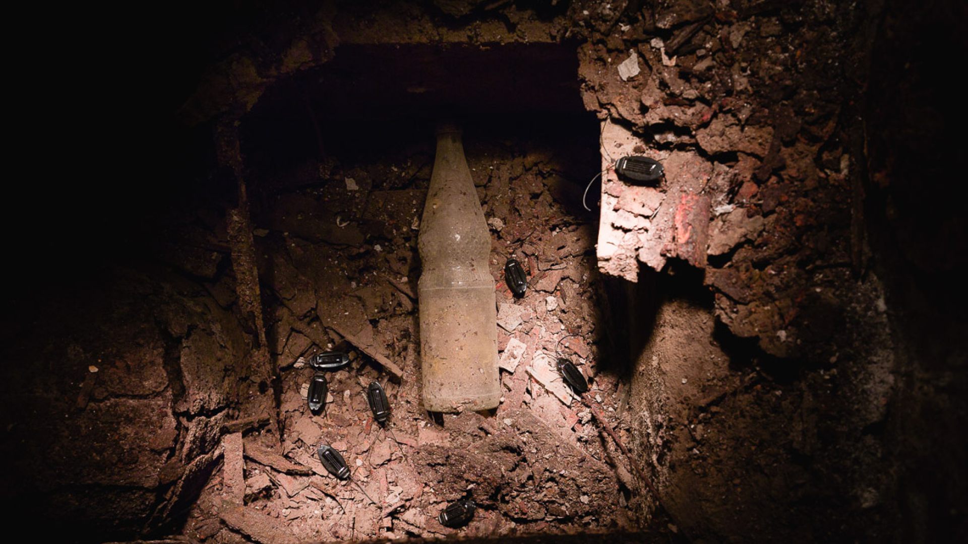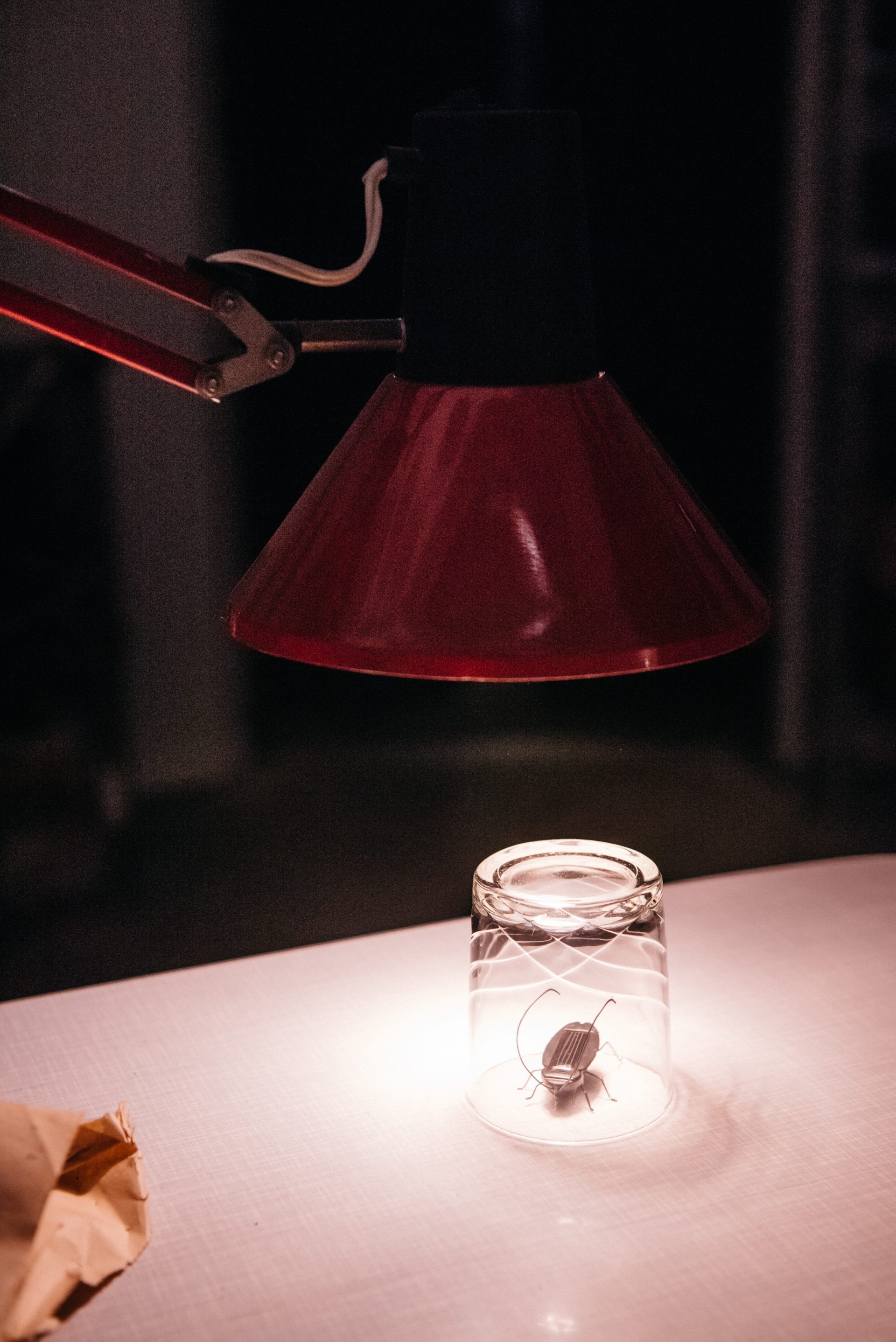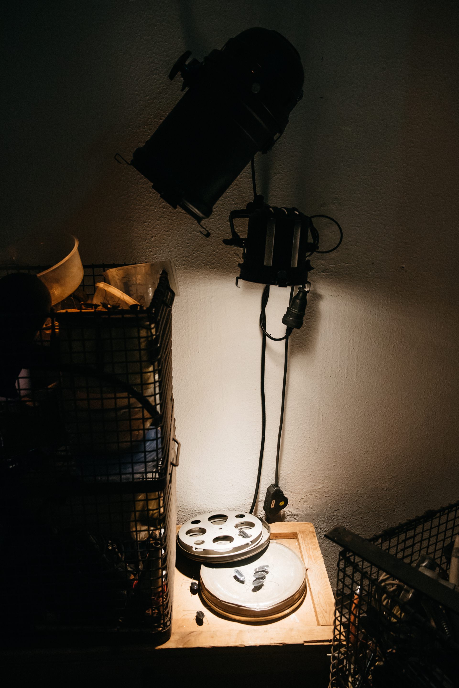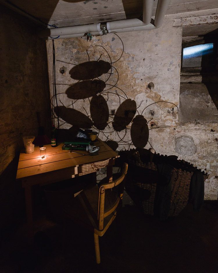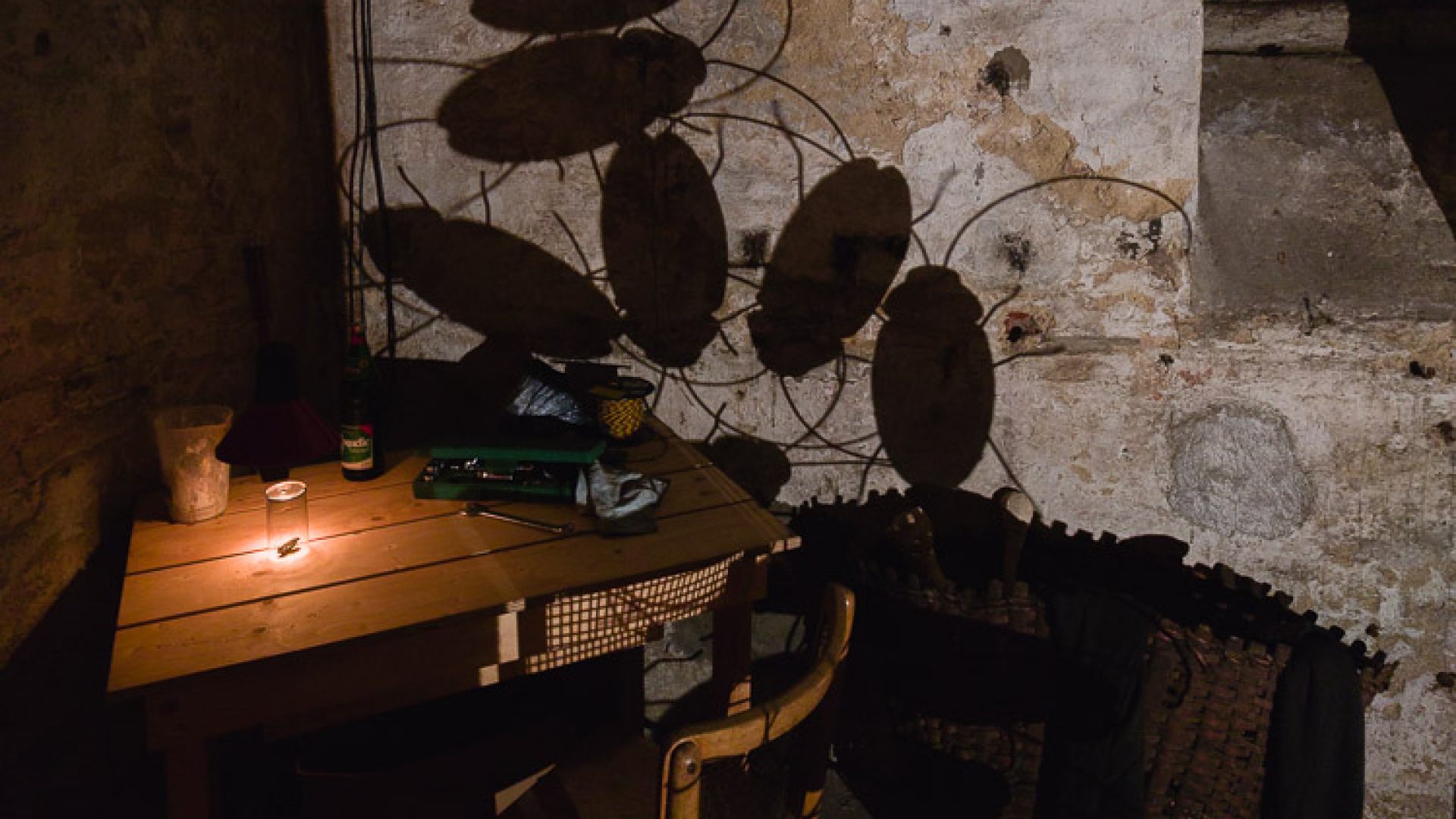 Die Arbeit „Verwandlung“ haben wir für das Deutsche Forum für Figurentheater und Puppenspielkunst (dfp) in Bochum im Rahmen des Festivals BoBiennale realisiert. Im Keller des 1903 erbauten Wasserturmgebäudes des dfp experimentieren wir an der Schnittstelle von Objekttheater, Licht- und Audioinstallation: In mehreren Räumen brachten wir verschiedene Lichtquellen, Objekte und ein verborgenes Audiosignal – ein Hörspiel von Kafkas „Die Verwandlung“ – zusammen.