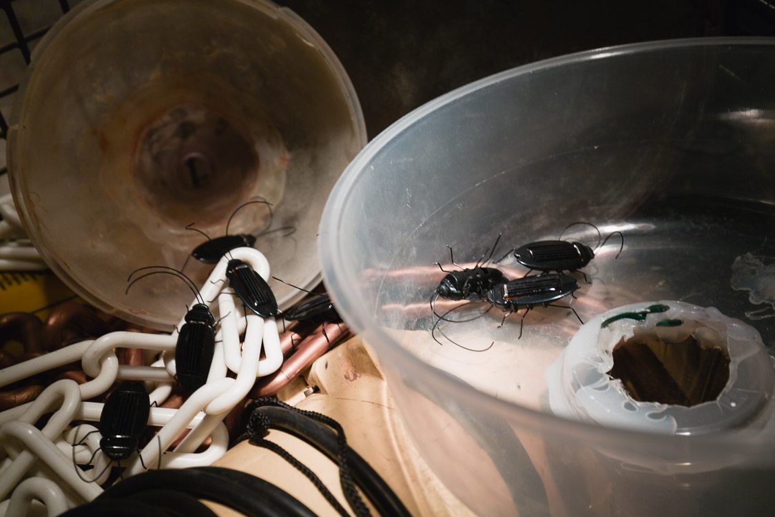 Dabei blieb das literarische Werk selbst unhörbar, steuerte aber die Lichtquellen und bewegte die Objekte: dutzende schwarze Solarkäfer. Auf diese Weise setzte sich der gesprochene Text über den Prozess, den er anstieß, im Raum selbst in Szene. Im Verlauf der zunehmenden Verwandlung Gregor Samsas in der Erzählung verwandelte sich beständig Ton in Licht und dieses in Bewegung der Objekte, die wiederum eine Geräuschkulisse erzeugte. Während sich zwischen den Elementen Übersetzungsprozesse entspannen, transformierten die Käfer nach und nach die Kellerräume.