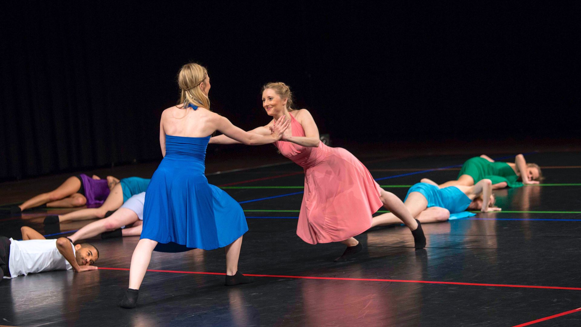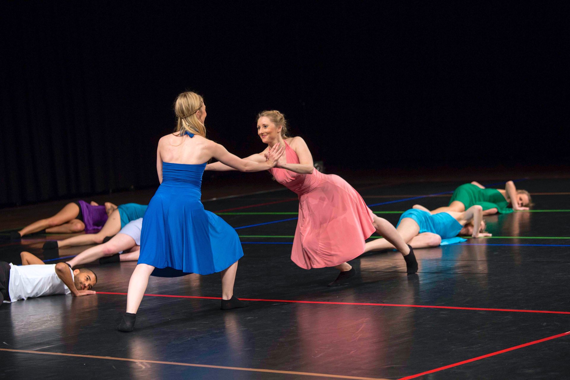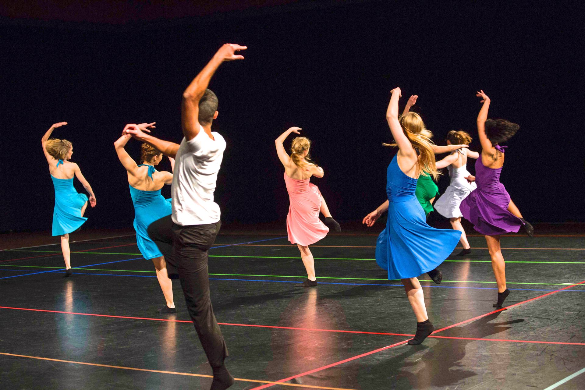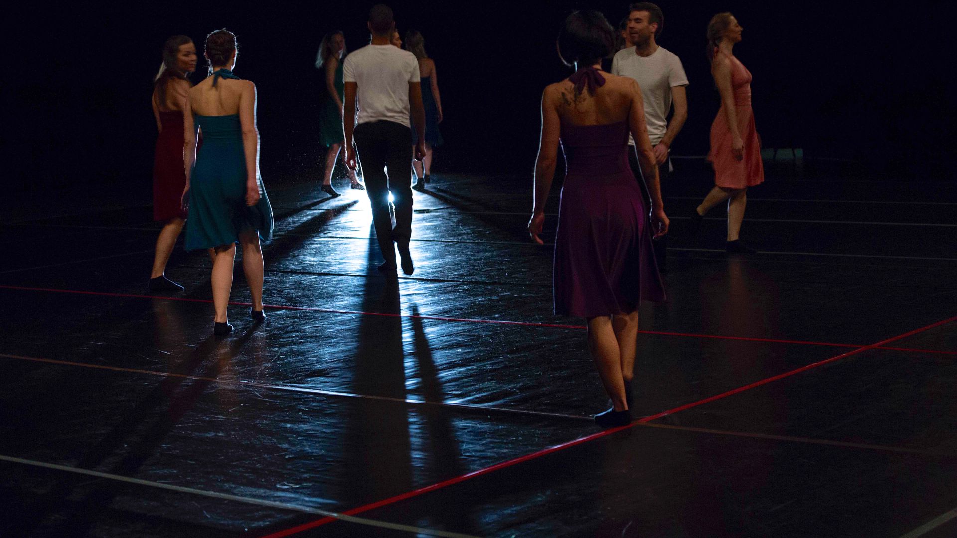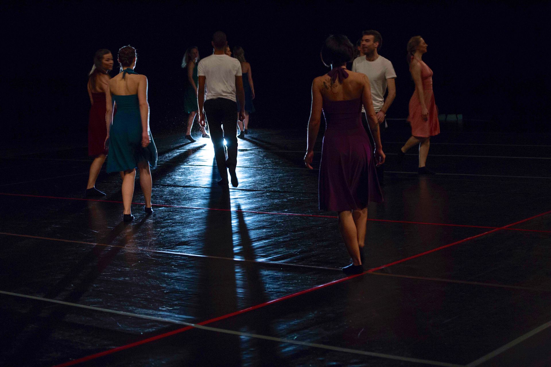 Das Lichtkonzept betonte die Bewegungsrichtungen durch Fluchtlinien. Im Hinblick auf die Frage nach Fortführung wurden Veränderungen im Licht und im Tanz teils zugleich gesetzt und reagierten aufeinander, teils wurden neue Abläufe in der Bewegung und Stimmungen in der Beleuchtung als gegenläufige Elemente zeitversetzt eingeführt.