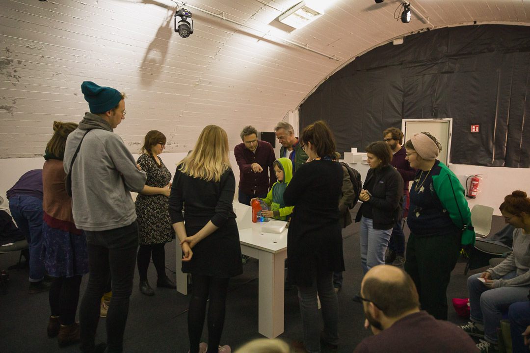 Auch 12 acts of unboxing (vernetztes Objekttheater und interaktive Installationen) lädt dazu ein, Objekte auszupacken, mit ihnen zu spielen, sie auszuprobieren, sich mit ihrer Beschaffenheit und (un-)möglichen Funktionen zu befassen. Diese Objekte sind allerdings keine Massenprodukte, nicht käuflich erworben und gehören eigentlich nicht in eine Kunsthalle: Es sind 12 Gegenstände aus dem Alltag von Bochumer Orten – für kurze Zeit herausgelöst aus ihrem Kontext. Wir setzen sie in Szene und errichten im Tausch dafür am Ort ihrer jeweiligen Herkunft eine ortsspezifische Installation, die auf das reagiert, was weit entfernt in der Performance mit ihrem Objekt geschieht.