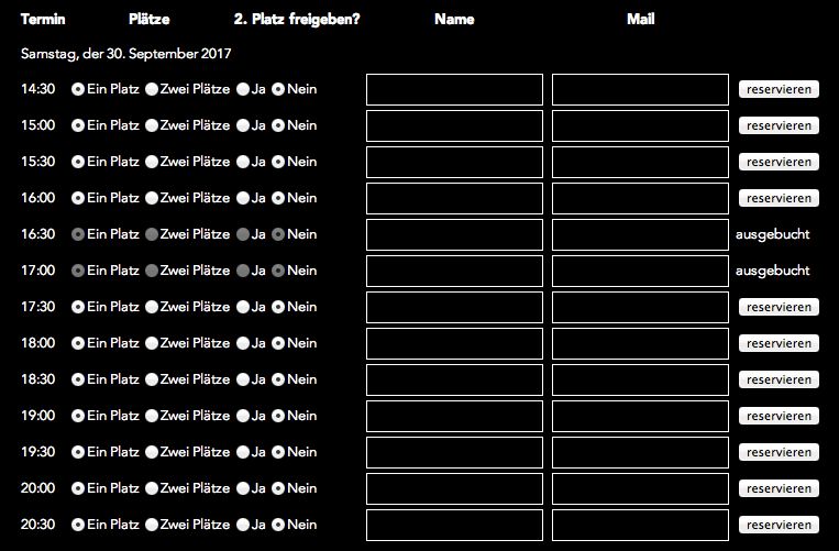 3. Ein Platz mit der Freigabe des zweiten Platzes zur späteren Buchung desselben Zeitfensters durch eine andere Person.