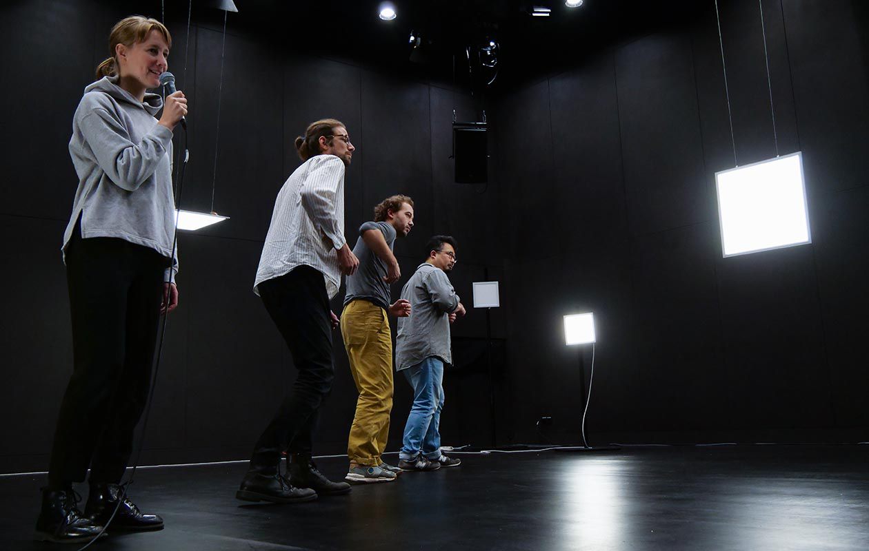 Im Oktober 2022 kommt das neue Stück des Konzeptkünstlers miu am FFT Düsseldorf zur Premiere, für das wir das Licht- und Raumdesign entworfen haben. Unter dem Titel do white entsteht eine Tanz-Performance, die sich einerseits mit dem Sichtbaren und Unsichtbaren, andererseits mit städtischer Telekommunikations-Infrastruktur und Möglichkeiten deren künstlerischer Neuinterpretation auseinandersetzt. So spielen auch auf der Ebene unseres Licht- und Raumdesigns einerseits Fragen des Sehens, des Verschwindens in der Dunkelheit, des geblendet Seins oder der Farbwahrnehmung und andereseits Aspekte der Vernetzung, Reaktionsketten sowie urbane Raumkonstellationen und Lichtquellen eine Rolle. Die Performance lädt sehendes, anders sehendes und nicht sehendes Publikum zu einem Kunsterlebnis ein. Die Audiodeskription (Deutsch: Kristin Schuster/Japanisch: Pia-Tomoko Meid), die als eigenständiges künstlerisches Mittel Teil des Stücks ist, ermöglicht den Zugang zum Aufführungsgeschehen. Vor den Vorstellungen wird außerdem eine Tastführung angeboten, bei der die Performer, Soya Arakawa, Baptiste Bersoux und Niels Bovri sich, das Stück und den Bühnenraum vorstellen.