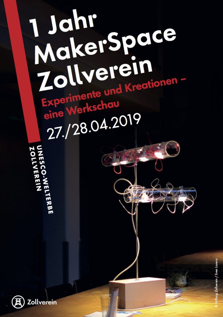 Seit mittlerweile einem Jahr gibt es den MakerSpace Zollverein, in dessen Rahmen wir Anfang des Jahres eingeladen waren, einen Workshop zum Thema Lichtgestaltung zu geben. Einige der dort entstandenen Lichtobjekte und -installationen sind nun Teil einer Ausstellung, die anlässlich des einjährigen Bestehens der Kreativwerkstatt stattfindet. Am 27. und 28. April werden die Arbeiten aus unserem und weiteren Workshops auf Zollverein gezeigt und am Samstag gibt es von 16:00-17:30 Uhr die Möglichkeit, sich mit den Gestalter*innen auszutauschen. Der Eintritt ist frei, um Anmeldung zur Eröffnung am 27.4. um 15:00 Uhr wird gebeten (