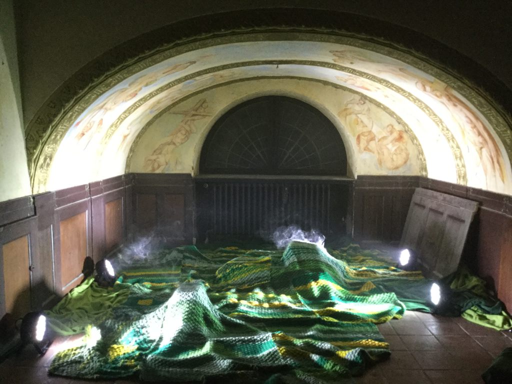 Nach der Premiere unserer Choreografie für Nebel und Objekte im Juli sind wir vom 29. September bis 03. Oktober 2021 mit Ausschnitten aus unserer Materialchoreografie zu Gast bei den Lichtspielen "Goldstücke" in Gelsenkirchen-Buer. Mit dem alten Ratskeller bespielen wir dort einen Ort, der seit vielen Jahren leer steht und trotzdem vielen Menschen noch in lebendiger Erinnerung ist. Einst Tanzlokal, später Diskothek, steht uns der Keller nun für eine Woche für Kunst zur Verfügung: Nebelschwaden ziehen durch das alte Gewölbe, Bässe vibrieren im Gemäuer mit den Wandfresken, Schatten erscheinen auf den gefliesten Wänden in der ehemaligen Küche. Wir freuen uns über die Einladung nach Gelsenkirchen und auf viele Besucher*innen!